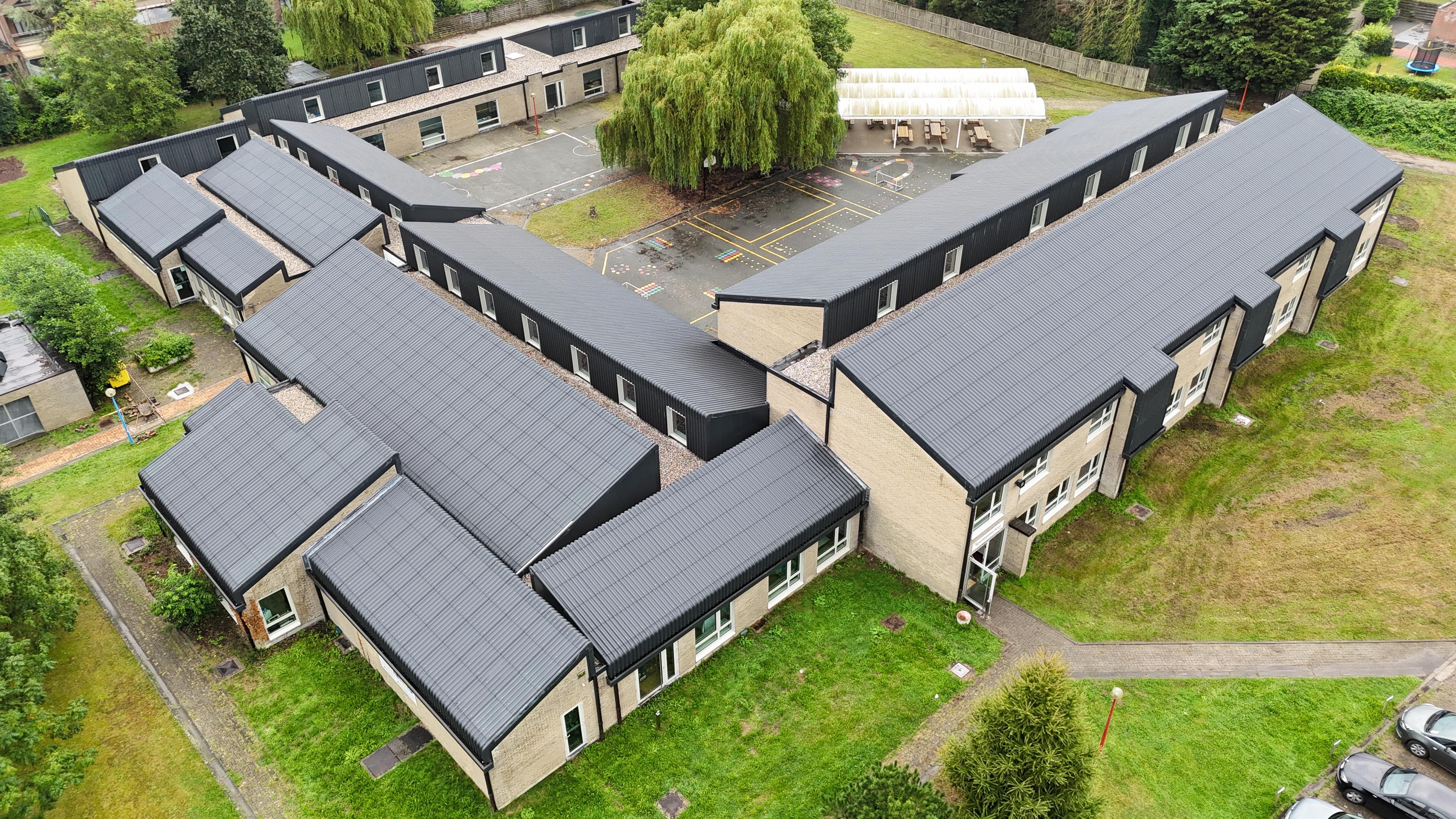 Vervangen van buitenschrijnwerk in aluminium (615m2) , renovatie hellende daken en gevelbekleding (2100m2) , platte daken