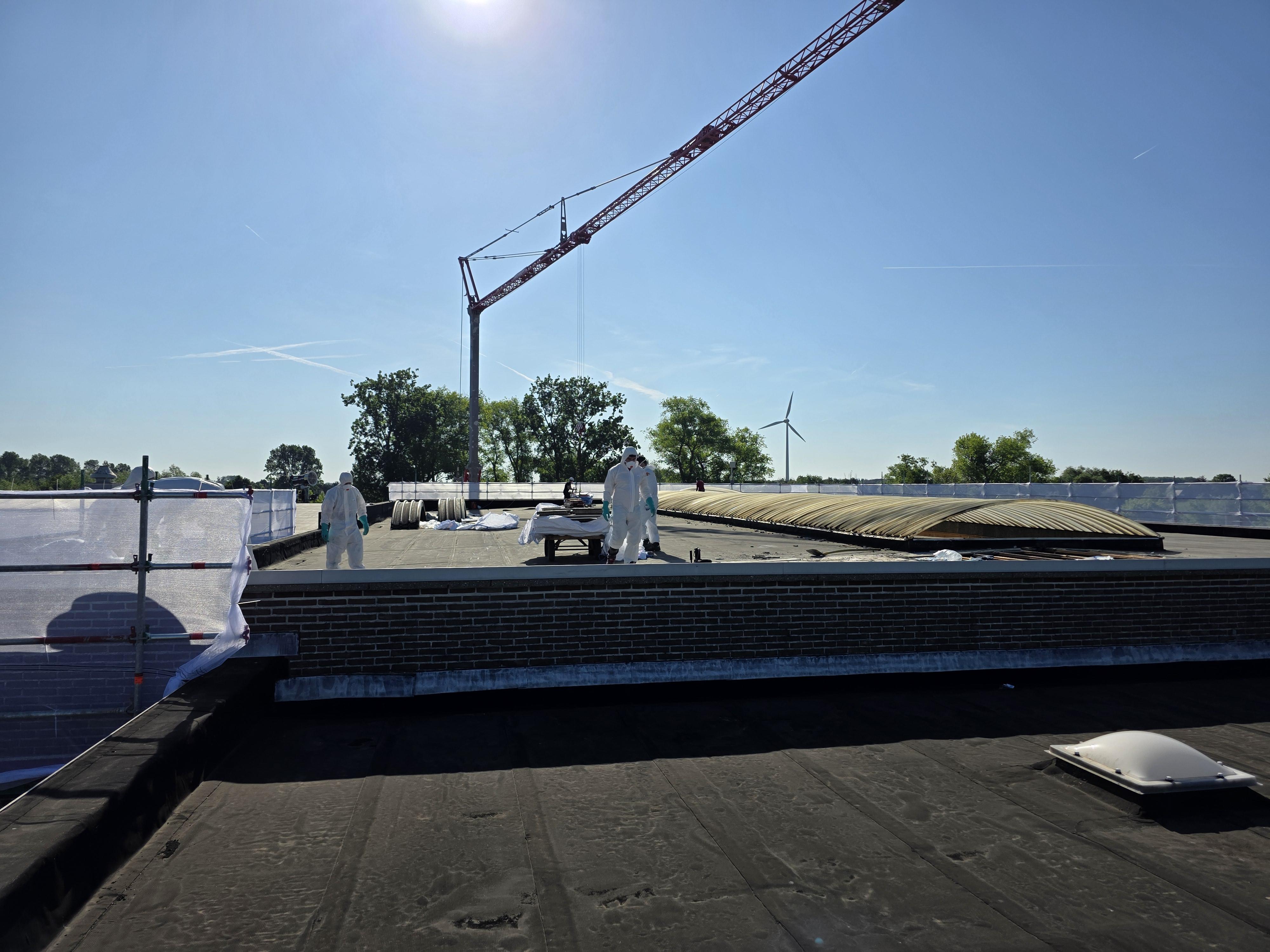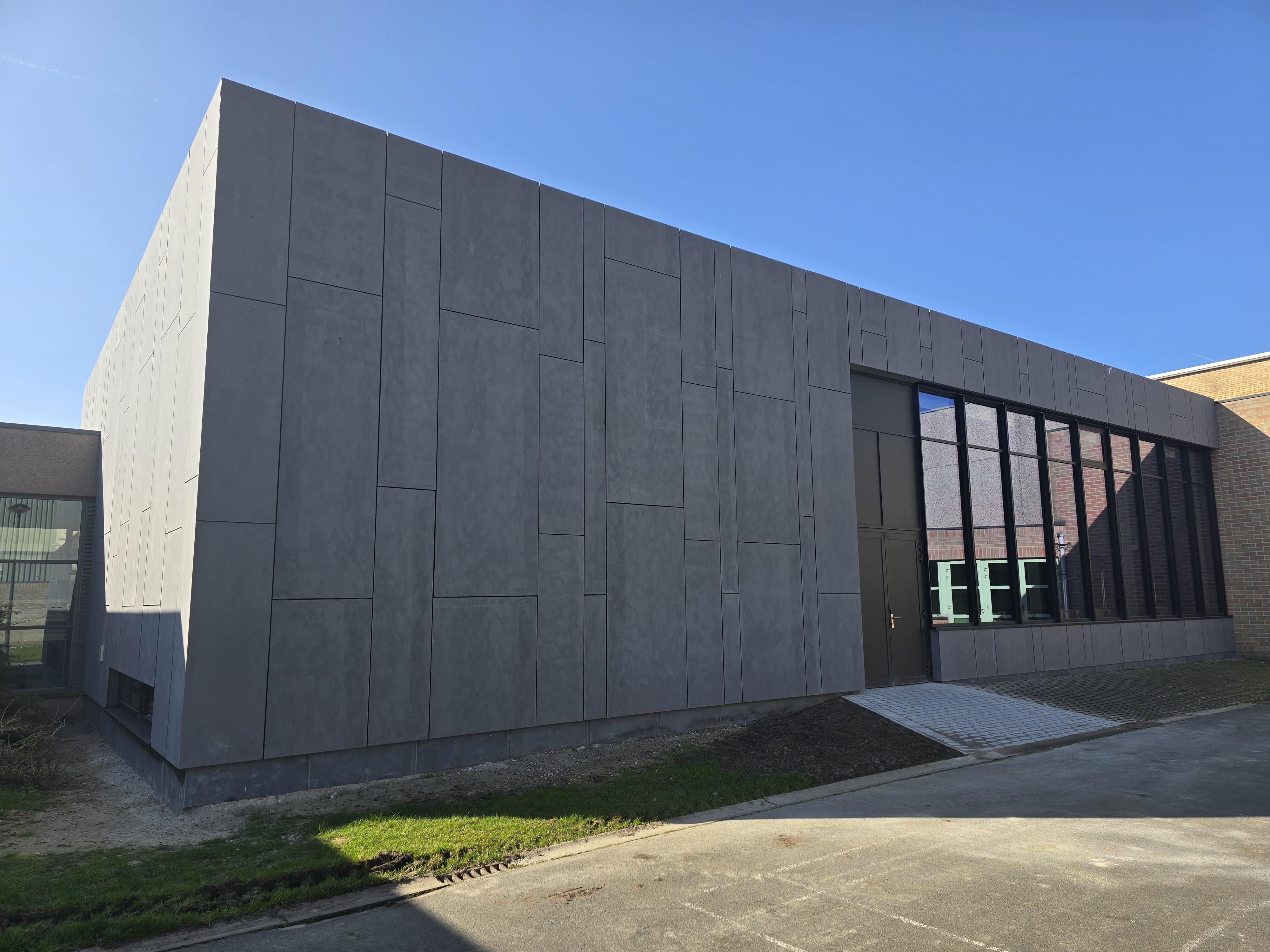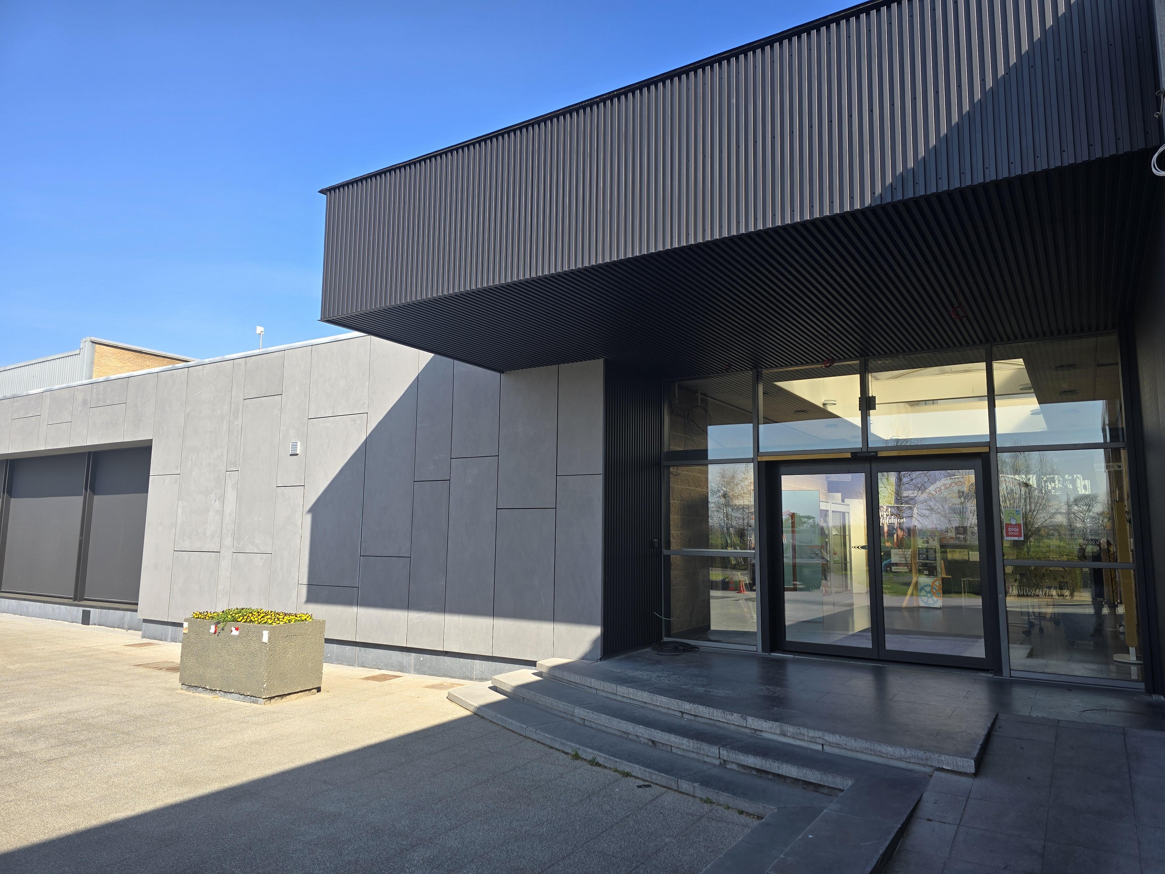 Vervangen van buitenschrijnwerk in aluminium en afwerkingen , gordijngevel , automatische schuifdeuren , gevelbeplating in geprofileerde aluminium & staalplaten , draagstructuur in aluminium voor gevelbeplating met onzichtbare bevestiging , vervangen dakopbouw (2200m2) inclusief steeldeckplaten , luifels in LVL en staalstructuur , verwijderen asbesthoudend plaatmateriaal (1100m2)