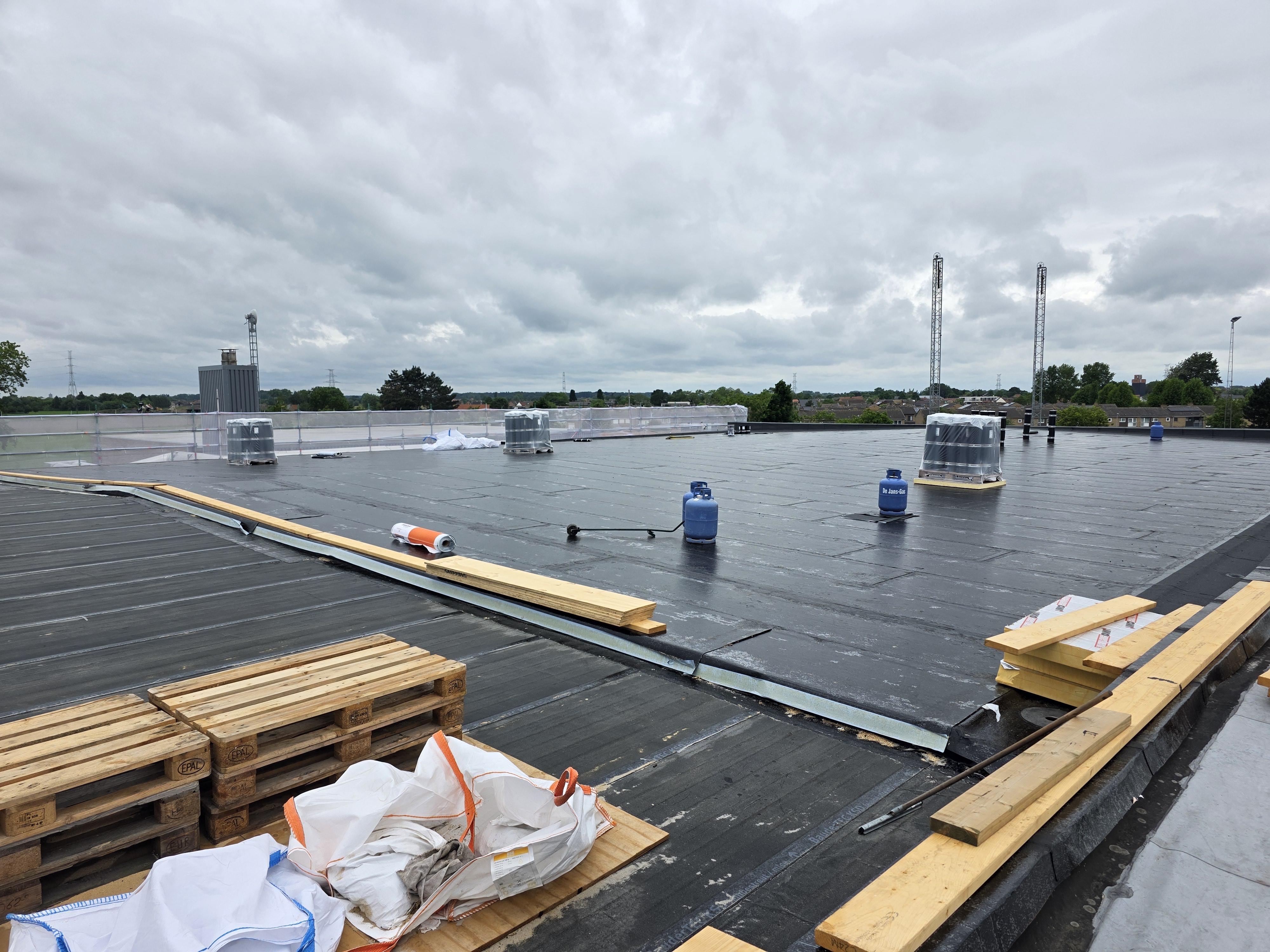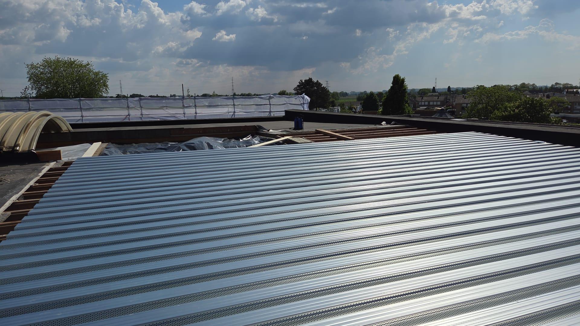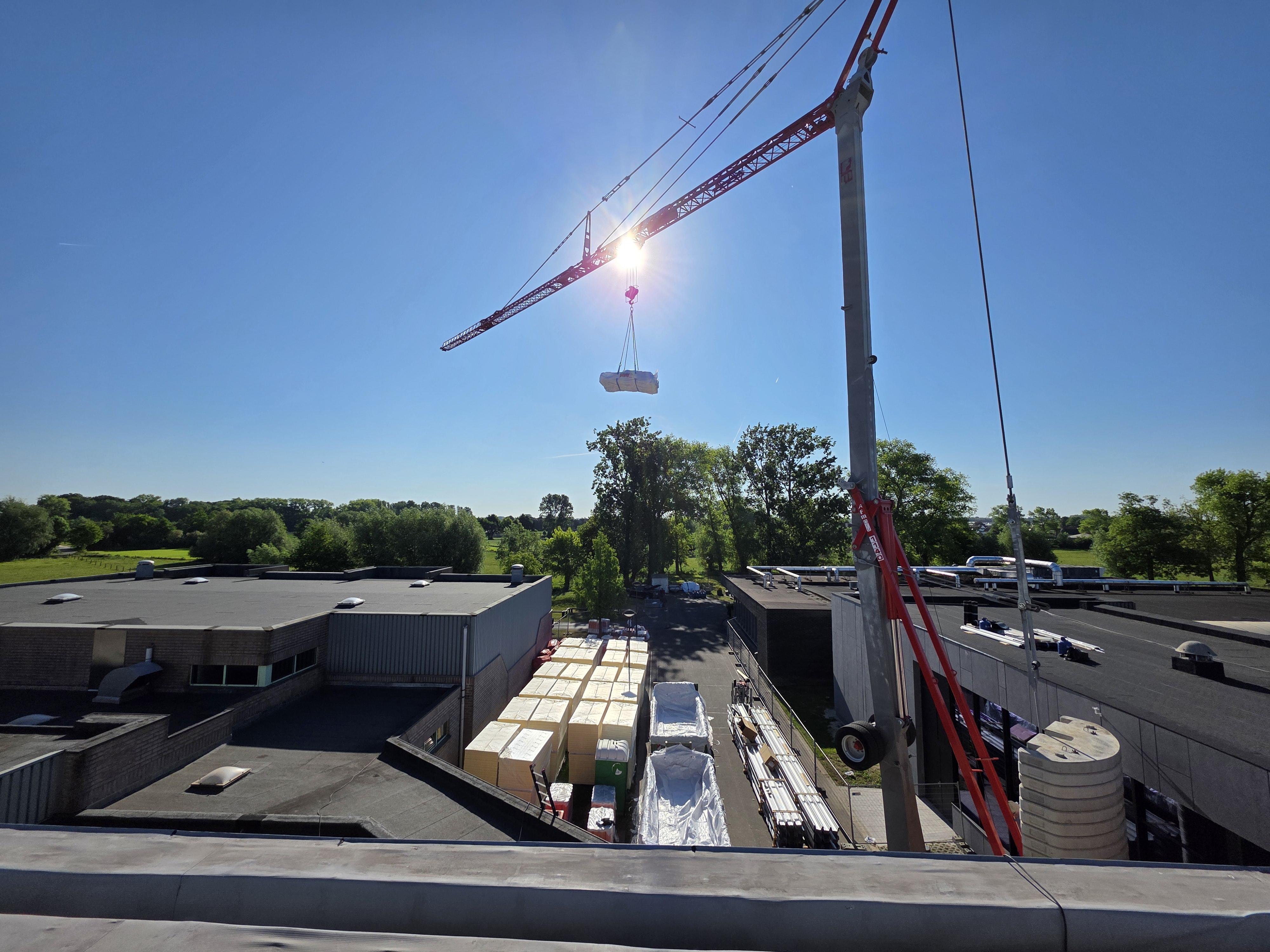 Vervangen van buitenschrijnwerk in aluminium en afwerkingen , gordijngevel , automatische schuifdeuren , gevelbeplating in geprofileerde aluminium & staalplaten , draagstructuur in aluminium voor gevelbeplating met onzichtbare bevestiging , vervangen dakopbouw (2200m2) inclusief steeldeckplaten , luifels in LVL en staalstructuur , verwijderen asbesthoudend plaatmateriaal (1100m2)