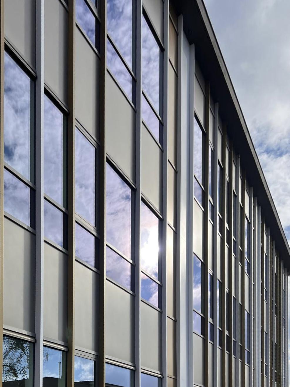 Vervangen van buitenschrijnwerk in aluminium : gordijngevels (1760m2) incl.zonwering en afwerkingen , gevel-&  betonherstel  , buitenschilderwerken , buitenplafonds
